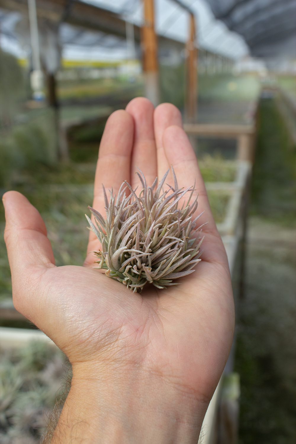 Tillandsia capitata 'Mauve Ball' is a striking air plant variety known for its compact, round shape and vibrant coloration. It features thick, fleshy leaves that are typically green, with a beautiful mauve or pink tint, especially when exposed to bright light. The leaves form a dense rosette, creating a ball-like appearance