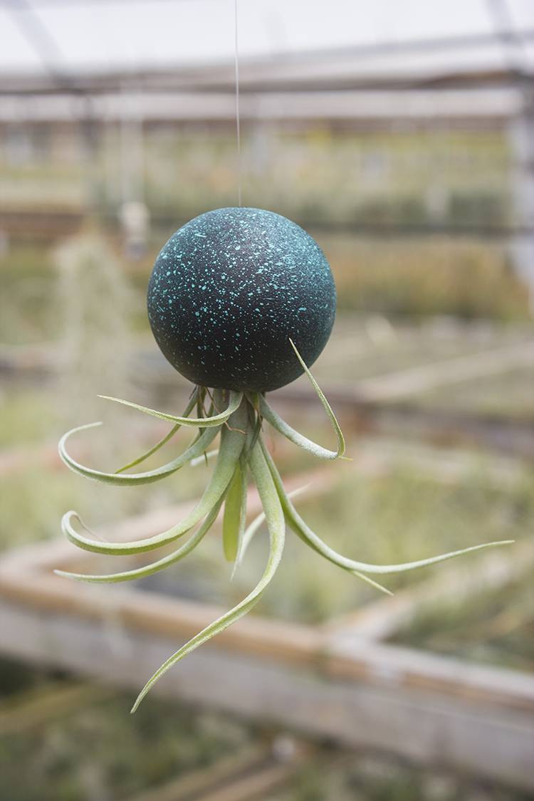 Cosmic Orbs are handmade out of 2" wooden orbs. The hole is 3/4" wide. Plants are included. Plant in the photograph is a Baileyi X Streptophylla.