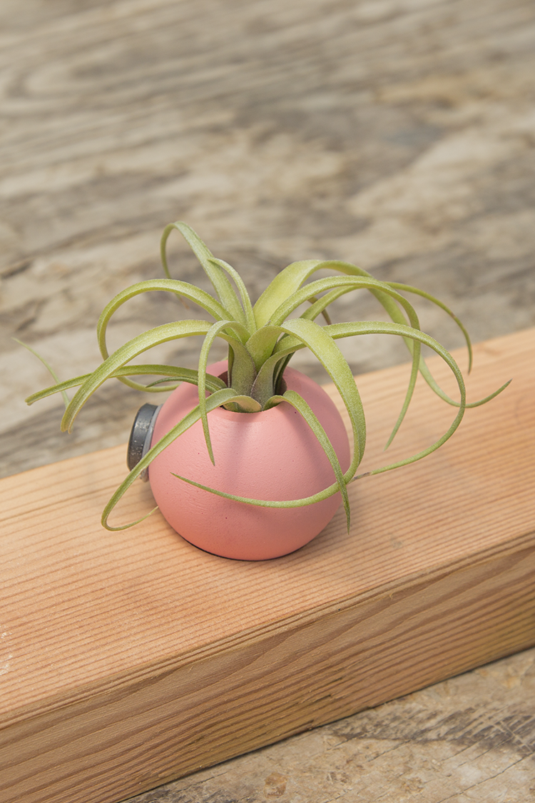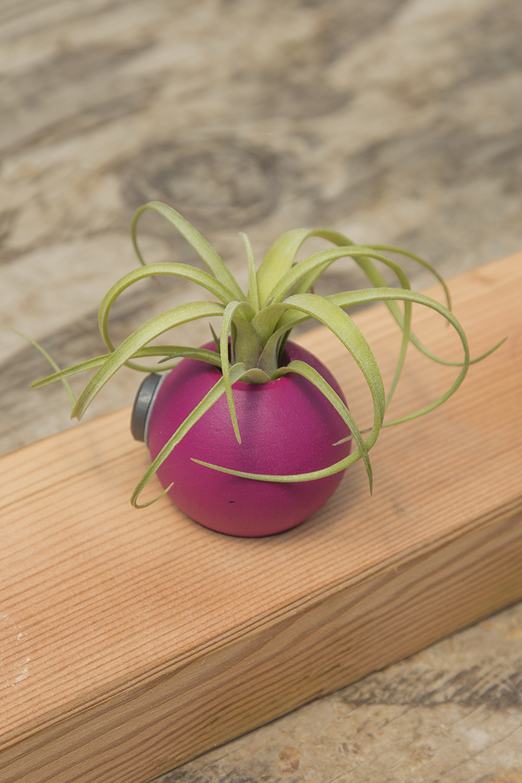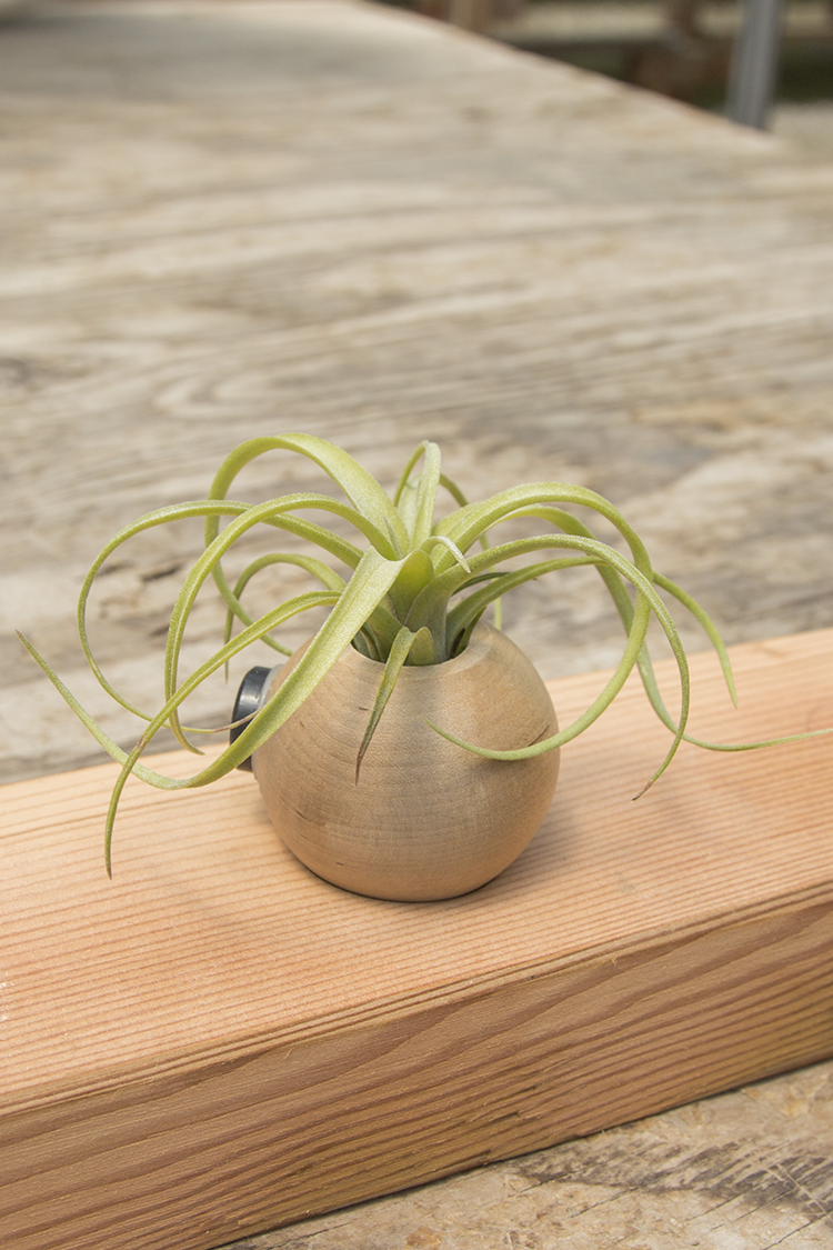 These magnets are handmade out of 2" wooden orbs. The hole is 3/4" wide. When selecting plants for these containers we recommend skinnier based plants. Plants are NOT INCLUDED. Plant in the photograph is a Baileyi X Streptophylla.