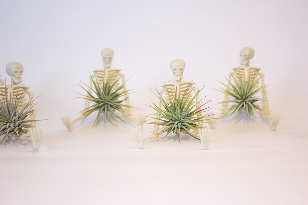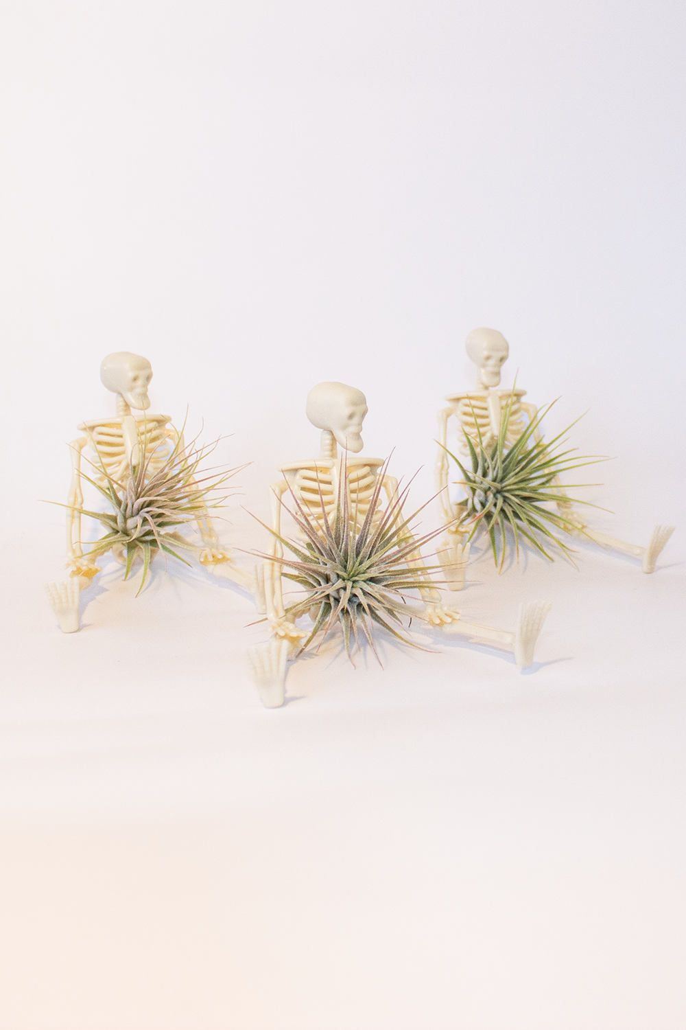 Bring in the Halloween spirit with classic skeleton figurines. Each of these bony fellows comes with a plant, and is sure to add some Halloween flair to any office or home.