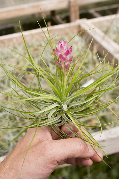 Stricta Lite Green has a similar bloom color as Stricta Silver, but its foliage is much lighter. It also has a different form than other strictas. The larger sizes are not quite larger in span but much fuller.