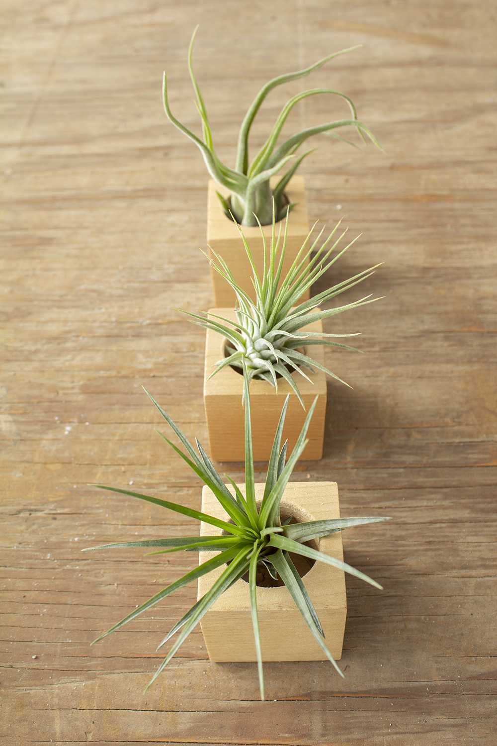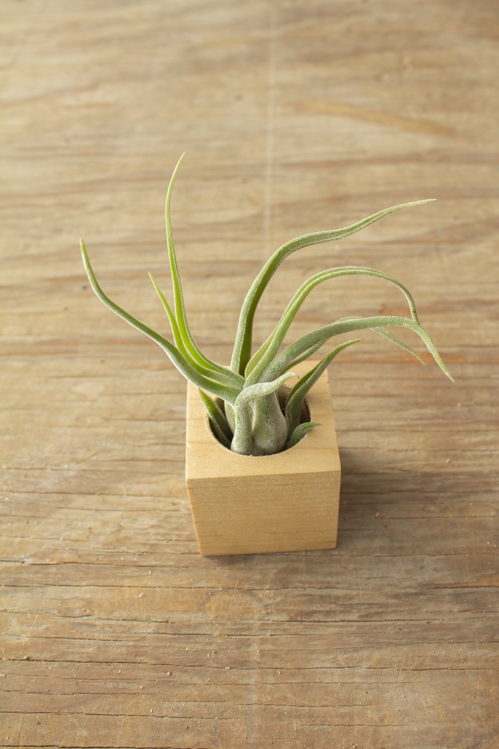 These hardwood pots are great for Air Plants and 2" plugs. These are 2" x 2," with a hole that is 1 and 1/4" wide. Each block is clear coated, designed to last. They also include a drainage hole. There is a 12 piece minimum. (Plants are sold separately)